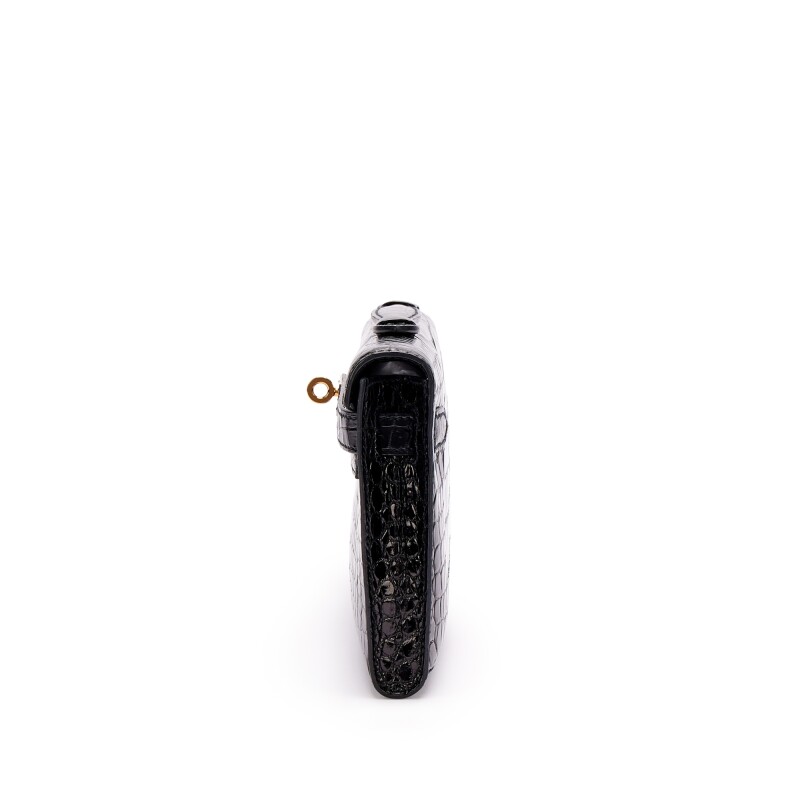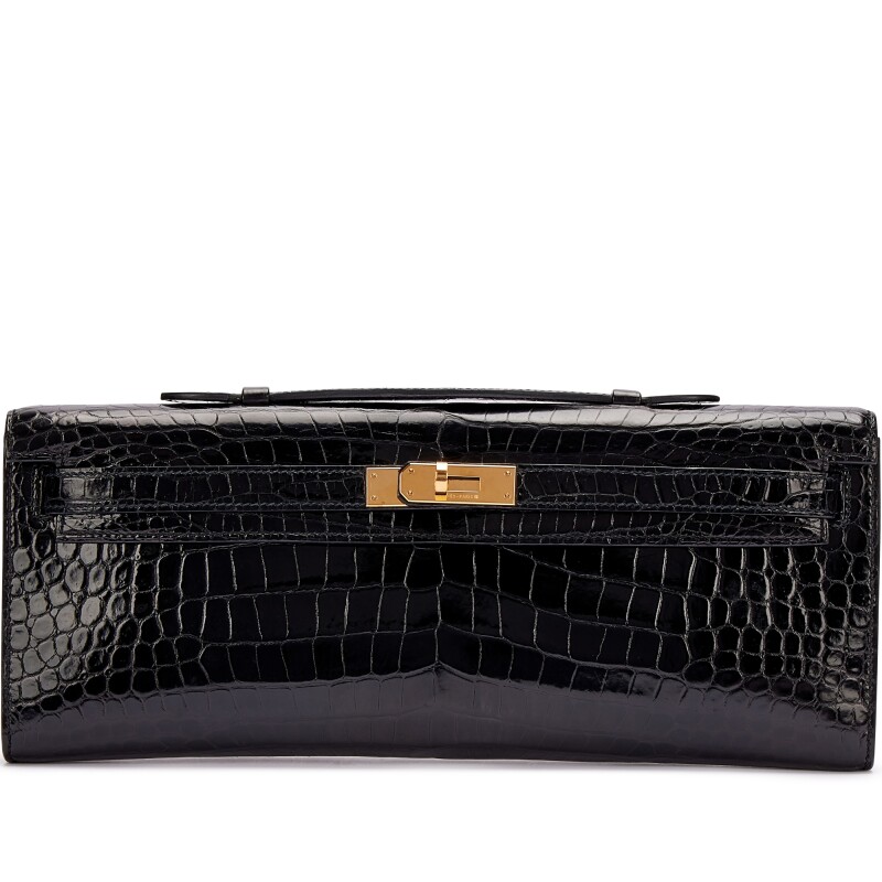 Hermès Kelly Cut – Black Shiny Porosus Crocodile with Gold Hardware